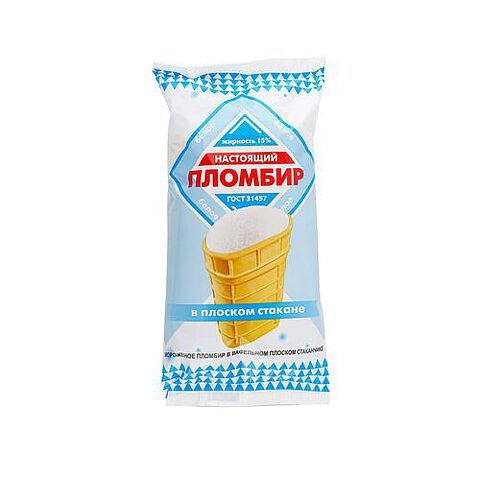 Мороженое пломбир в вафельном плоском стаканчике 90 гр